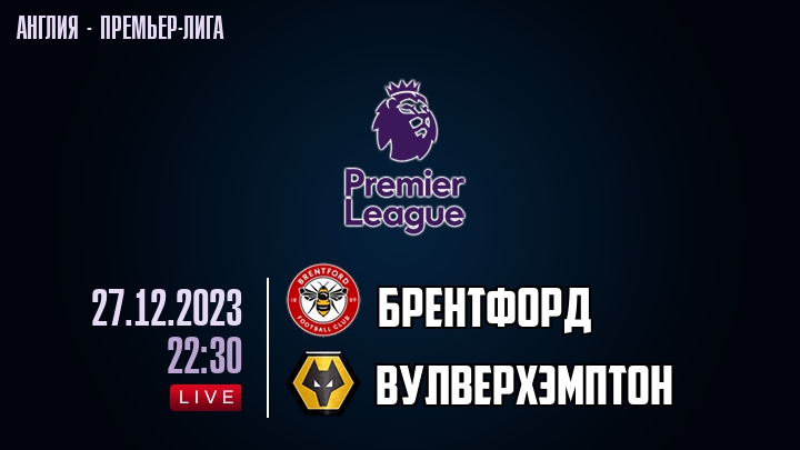 27 декабря 2023 года, состоялась онлайн трансляция футбольного матча между футбольным клубом Брентфорд и футбольным клубом Вулверхэмптон, проходящего в рамках Премьер лиги Англии.