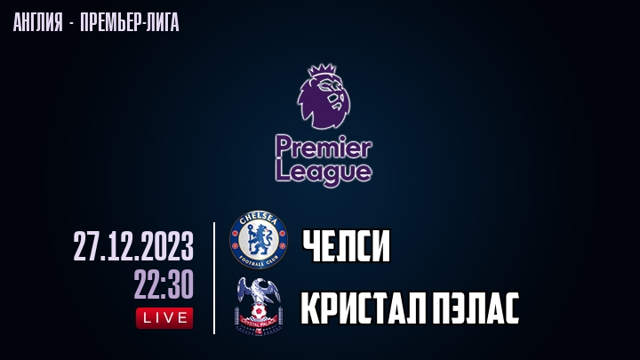 27 декабря 2023 года, состоялась онлайн трансляция футбольного матча между футбольным клубом Челси и футбольным клубом Кристал Пэлас, проходящего в рамках Премьер лиги Англии.