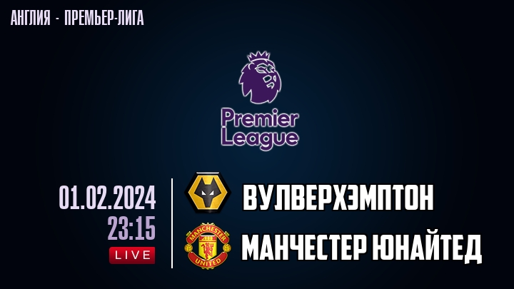 1 февраля 2024 года, состоялась онлайн трансляция футбольного матча между футбольным клубом Вулверхэмптон и футбольным клубом Манчестер Юнайтед, проходящего в рамках Премьер лиги Англии.