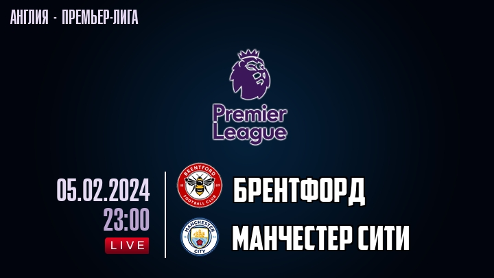 5 февраля 2024 года, состоялась онлайн трансляция футбольного матча между футбольным клубом Брентфорд и футбольным клубом Манчестер Сити, проходящего в рамках Премьер лиги Англии.