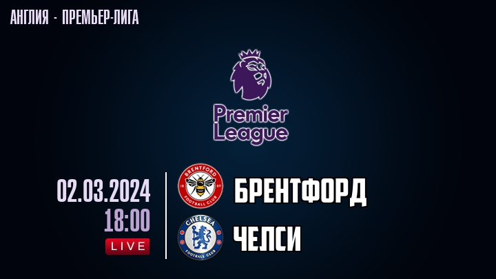 2 марта 2024 года, состоялась онлайн трансляция футбольного матча между футбольным клубом Брентфорд и футбольным клубом Челси, проходящего в рамках Премьер лиги Англии.