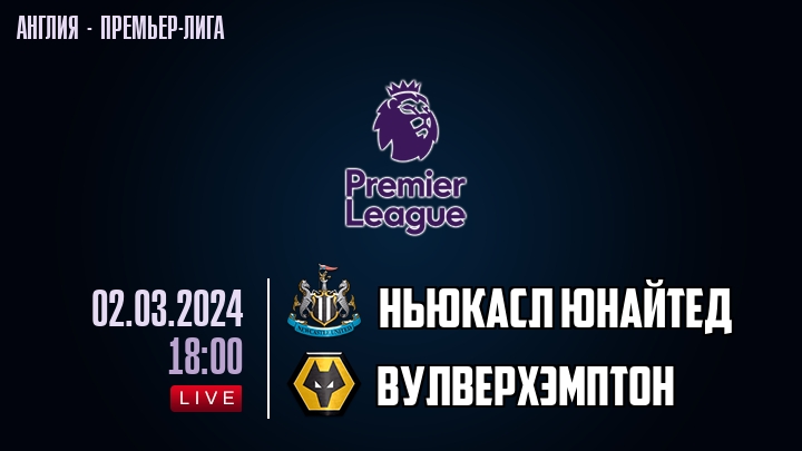 2 марта 2024 года, состоялась онлайн трансляция футбольного матча между футбольным клубом Ньюкасл Юнайтед и футбольным клубом Вулверхэмптон, проходящего в рамках Премьер лиги Англии.