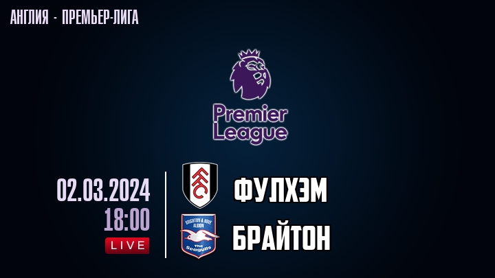 2 марта 2024 года, состоялась онлайн трансляция футбольного матча между футбольным клубом Фулхэм и футбольным клубом Брайтон, проходящего в рамках Премьер лиги Англии.
