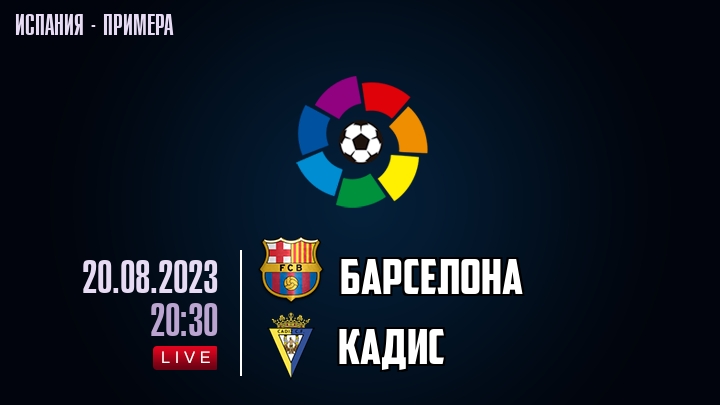 20 августа 2023 года, состоялась онлайн трансляция футбольного матча между футбольным клубом Барселона и футбольным клубом Кадис, проходящего в рамках чемпионата Испании.
