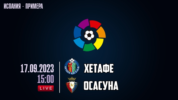 17 сентября 2023 года, состоялась онлайн трансляция футбольного матча между футбольным клубом Хетафе и футбольным клубом Осасуна, проходящего в рамках чемпионата Испании.
