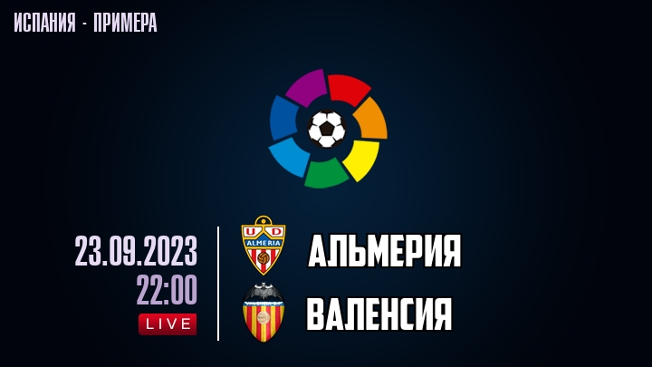 23 сентября 2023 года, состоялась онлайн трансляция футбольного матча между футбольным клубом Альмерия и футбольным клубом Валенсия, проходящего в рамках чемпионата Испании.