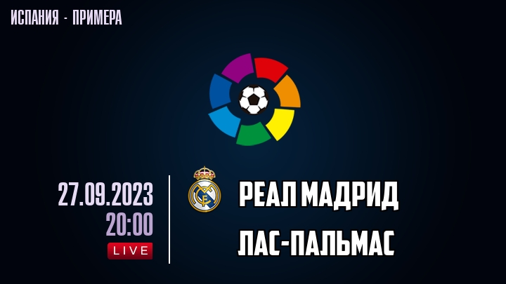 27 сентября 2023 года, состоялась онлайн трансляция футбольного матча между футбольным клубом Реал Мадрид и футбольным клубом Лас-Пальмас, проходящего в рамках чемпионата Испании.