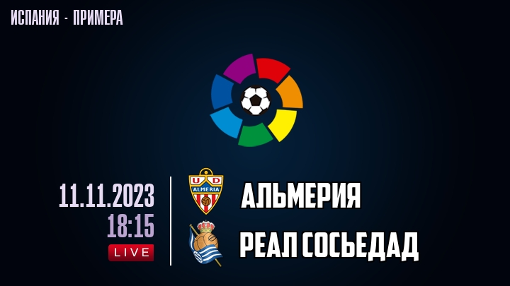 11 ноября 2023 года, состоялась онлайн трансляция футбольного матча между футбольным клубом Альмерия и футбольным клубом Реал Сосьедад, проходящего в рамках чемпионата Испании.