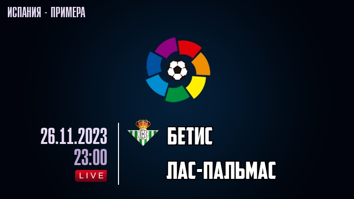 26 ноября 2023 года, состоялась онлайн трансляция футбольного матча между футбольным клубом Бетис и футбольным клубом Лас-Пальмас, проходящего в рамках чемпионата Испании.
