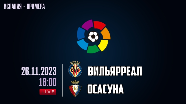 26 ноября 2023 года, состоялась онлайн трансляция футбольного матча между футбольным клубом Вильярреал и футбольным клубом Осасуна, проходящего в рамках чемпионата Испании.