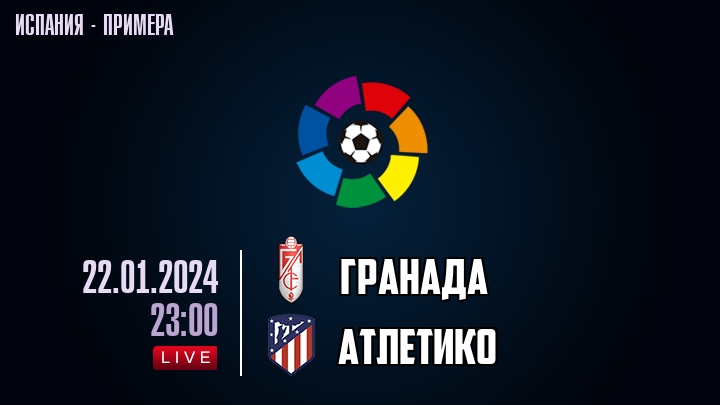 22 января 2024 года, состоялась онлайн трансляция футбольного матча между футбольным клубом Гранада и футбольным клубом Атлетико, проходящего в рамках чемпионата Испании.