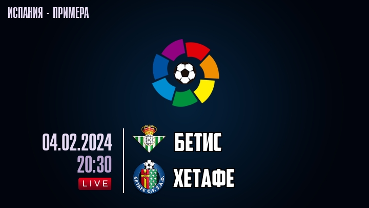 4 февраля 2024 года, состоялась онлайн трансляция футбольного матча между футбольным клубом Бетис и футбольным клубом Хетафе, проходящего в рамках чемпионата Испании.