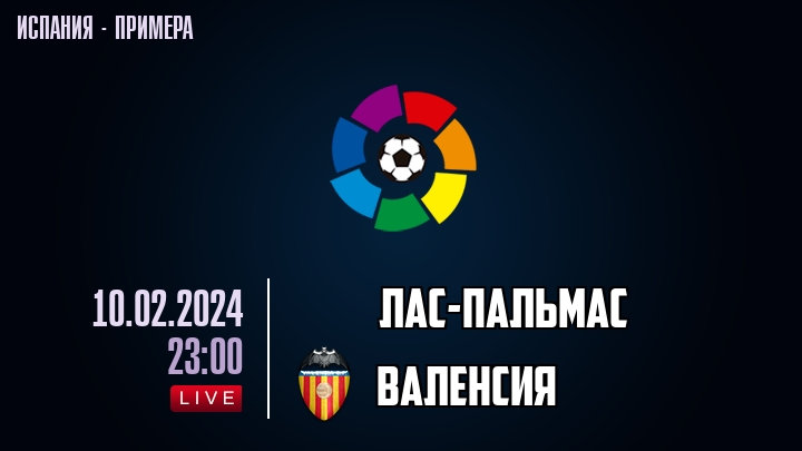 10 февраля 2024 года, состоялась онлайн трансляция футбольного матча между футбольным клубом Лас-Пальмас и футбольным клубом Валенсия, проходящего в рамках чемпионата Испании.