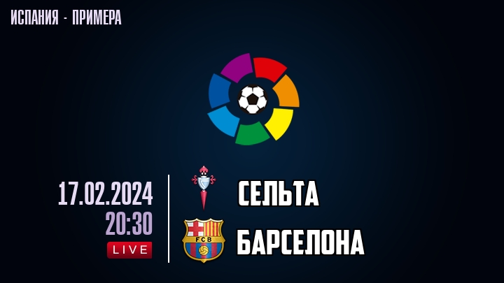 17 февраля 2024 года, состоялась онлайн трансляция футбольного матча между футбольным клубом Сельта и футбольным клубом Барселона, проходящего в рамках чемпионата Испании.