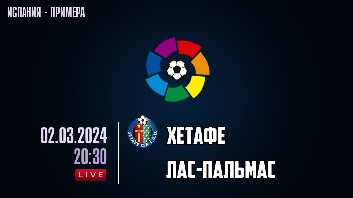 2 марта 2024 года, состоялась онлайн трансляция футбольного матча между футбольным клубом Хетафе и футбольным клубом Лас-Пальмас, проходящего в рамках чемпионата Испании.