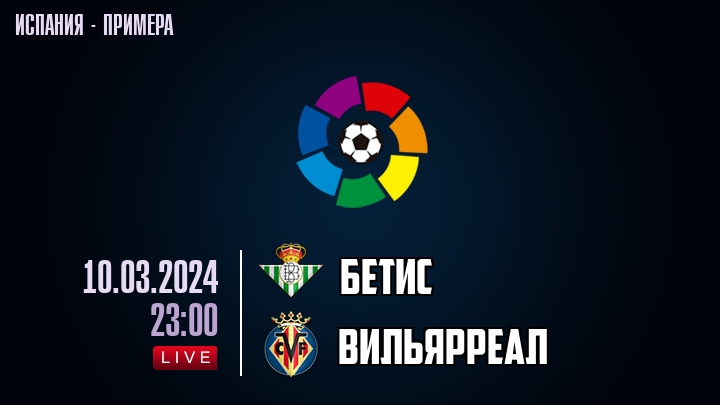10 марта 2024 года, состоялась онлайн трансляция футбольного матча между футбольным клубом Бетис и футбольным клубом Вильярреал, проходящего в рамках чемпионата Испании.