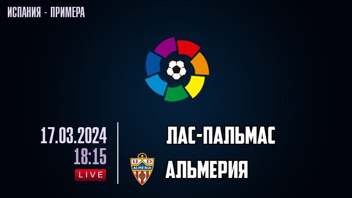 17 марта 2024 года, состоялась онлайн трансляция футбольного матча между футбольным клубом Лас-Пальмас и футбольным клубом Альмерия, проходящего в рамках чемпионата Испании.