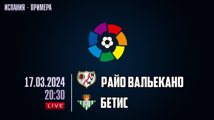 17 марта 2024 года, состоялась онлайн трансляция футбольного матча между футбольным клубом Райо Вальекано и футбольным клубом Бетис, проходящего в рамках чемпионата Испании.