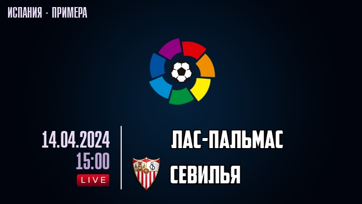 14 апреля 2024 года, состоялась онлайн трансляция футбольного матча между футбольным клубом Лас-Пальмас и футбольным клубом Севилья, проходящего в рамках чемпионата Испании.