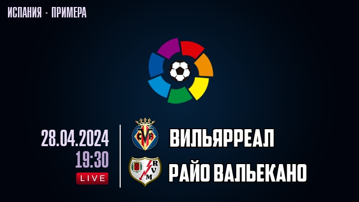 28 апреля 2024 года, состоялась онлайн трансляция футбольного матча между футбольным клубом Вильярреал и футбольным клубом Райо Вальекано, проходящего в рамках чемпионата Испании.
