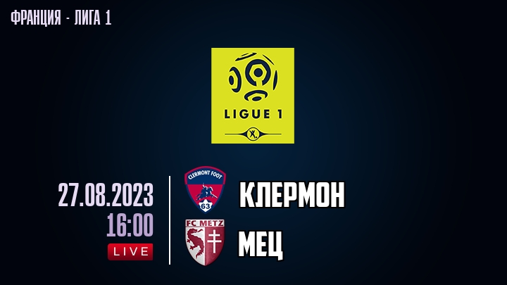 27 августа 2023 года, состоялась онлайн трансляция футбольного матча между футбольным клубом Клермон и футбольным клубом Мец, проходящего в рамках Лиги 1 чемпионата Франция.