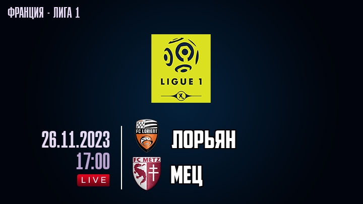 26 ноября 2023 года, состоялась онлайн трансляция футбольного матча между футбольным клубом Лорьян и футбольным клубом Мец, проходящего в рамках Лиги 1 чемпионата Франция.