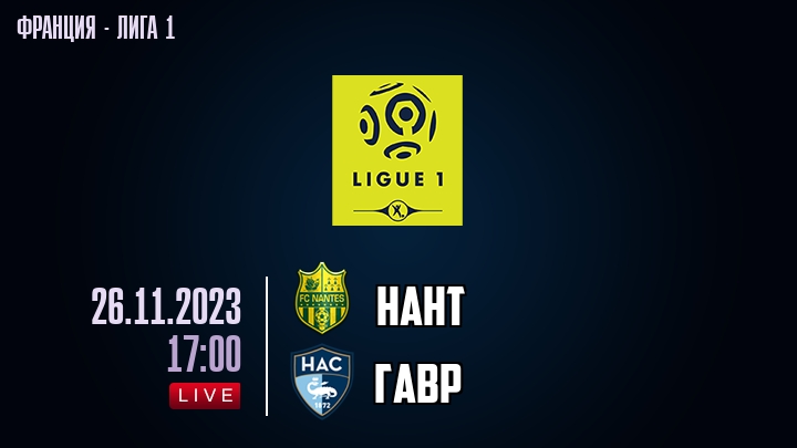26 ноября 2023 года, состоялась онлайн трансляция футбольного матча между футбольным клубом Нант и футбольным клубом Гавр, проходящего в рамках Лиги 1 чемпионата Франция.