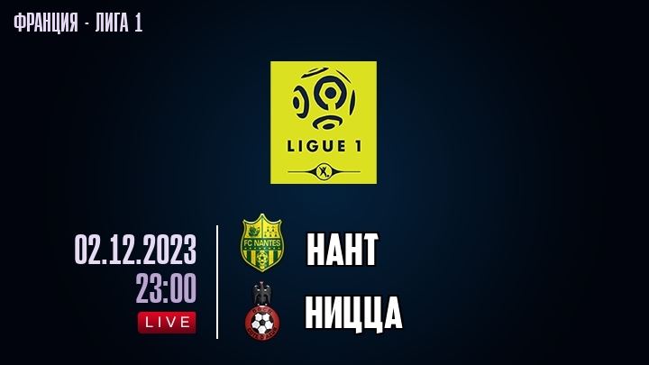 2 декабря 2023 года, состоялась онлайн трансляция футбольного матча между футбольным клубом Нант и футбольным клубом Ницца, проходящего в рамках Лиги 1 чемпионата Франция.