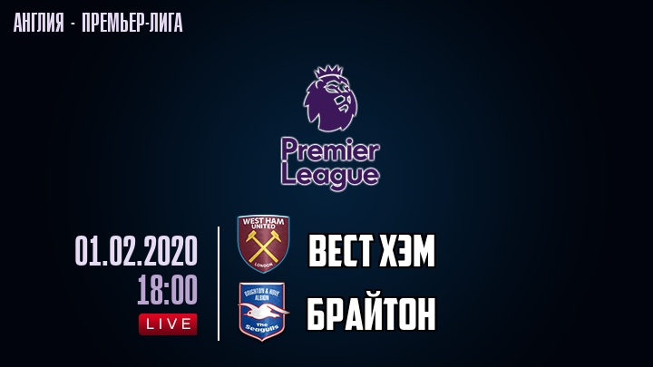 1 февраля 2020 года, состоялась онлайн трансляция футбольного матча между футбольным клубом Вест Хэм и футбольным клубом Брайтон, проходящего в рамках Премьер лиги Англии.