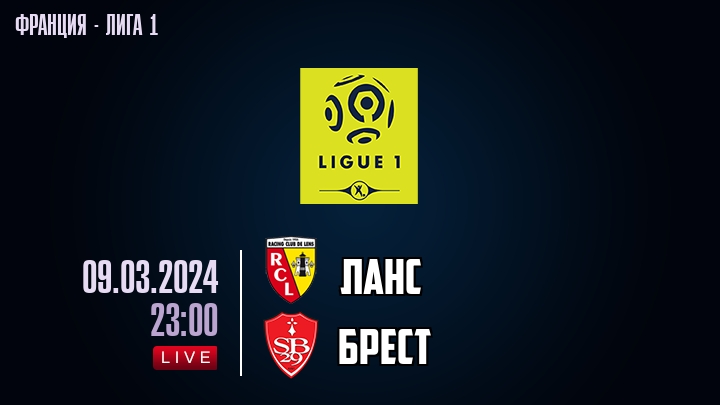 9 марта 2024 года, состоялась онлайн трансляция футбольного матча между футбольным клубом Ланс и футбольным клубом Брест, проходящего в рамках Лиги 1 чемпионата Франция.