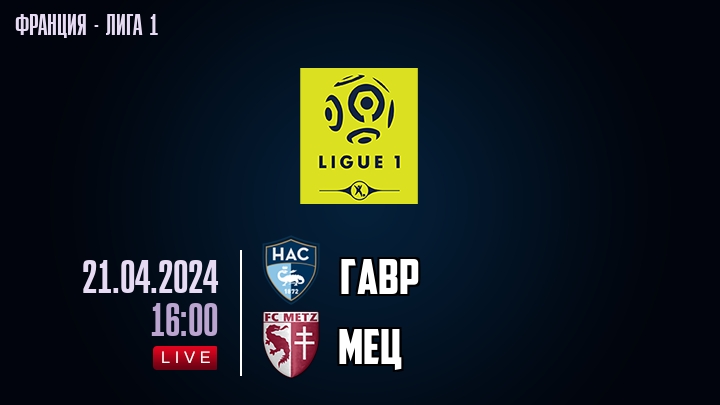 21 апреля 2024 года, состоялась онлайн трансляция футбольного матча между футбольным клубом Гавр и футбольным клубом Мец, проходящего в рамках Лиги 1 чемпионата Франция.