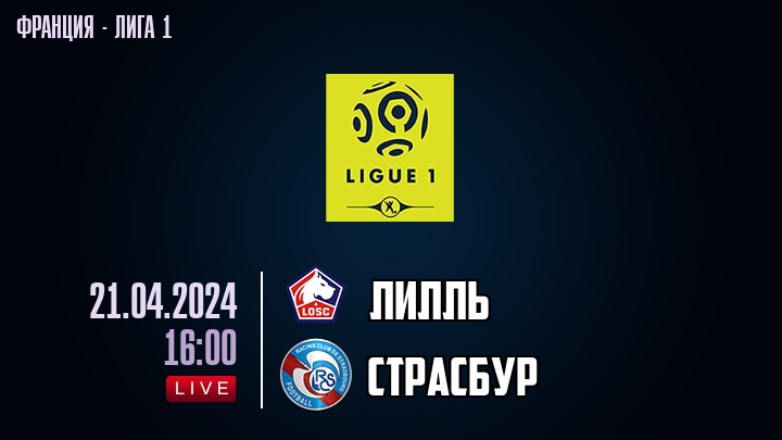 21 апреля 2024 года, состоялась онлайн трансляция футбольного матча между футбольным клубом Лилль и футбольным клубом Страсбур, проходящего в рамках Лиги 1 чемпионата Франция.