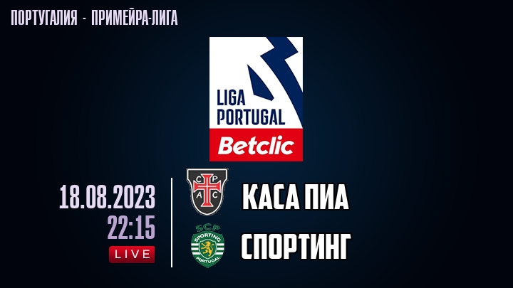 18 августа 2023 года, состоялась онлайн трансляция футбольного матча между футбольным клубом Каса Пиа и футбольным клубом Спортинг, проходящего в рамках Примейра-лиги Португалии.