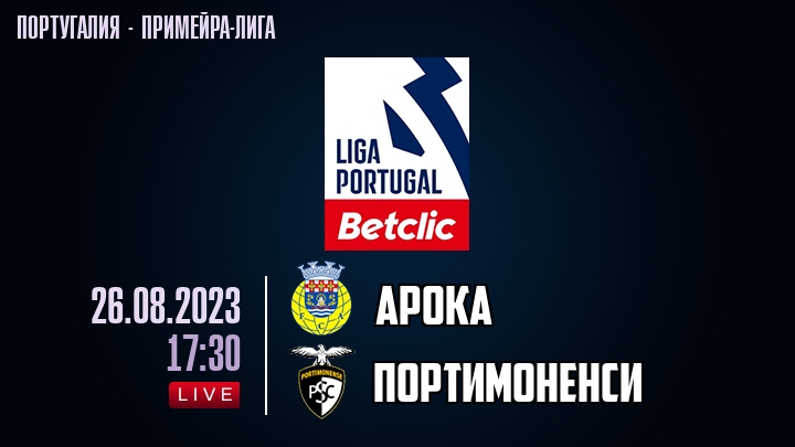 26 августа 2023 года, состоялась онлайн трансляция футбольного матча между футбольным клубом Арока и футбольным клубом Портимоненси, проходящего в рамках Примейра-лиги Португалии.