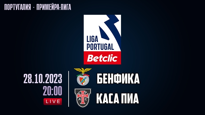 28 октября 2023 года, состоялась онлайн трансляция футбольного матча между футбольным клубом Бенфика и футбольным клубом Каса Пиа, проходящего в рамках Примейра-лиги Португалии.