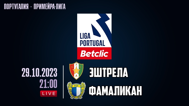 29 октября 2023 года, состоялась онлайн трансляция футбольного матча между футбольным клубом Эштрела и футбольным клубом Фамаликан, проходящего в рамках Примейра-лиги Португалии.