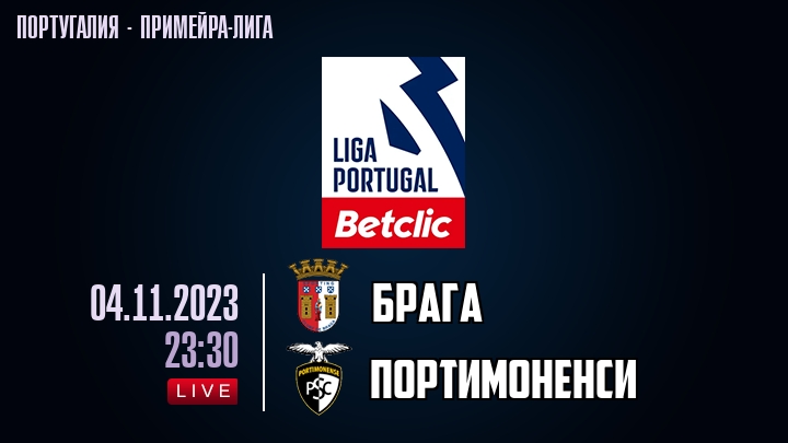 4 ноября 2023 года, состоялась онлайн трансляция футбольного матча между футбольным клубом Брага и футбольным клубом Портимоненси, проходящего в рамках Примейра-лиги Португалии.