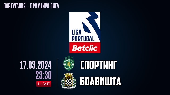 17 марта 2024 года, состоялась онлайн трансляция футбольного матча между футбольным клубом Спортинг и футбольным клубом Боавишта, проходящего в рамках Примейра-лиги Португалии.