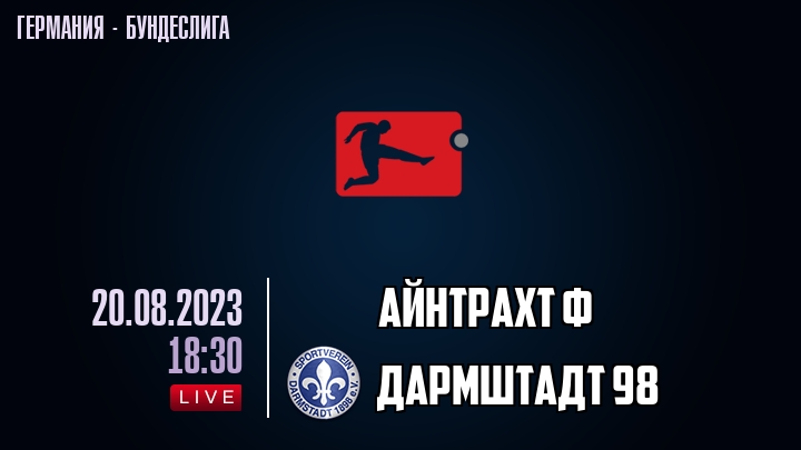 20 августа 2023 года, состоялась онлайн трансляция футбольного матча между футбольным клубом Айнтрахт Ф и футбольным клубом Дармштадт, проходящего в рамках Бундеслиги Германии.