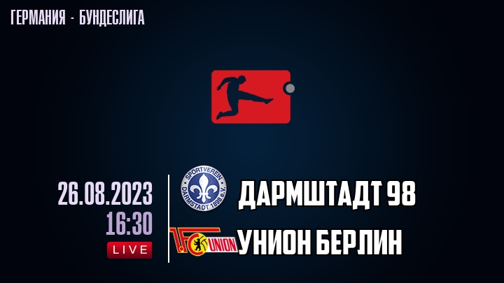 26 августа 2023 года, состоялась онлайн трансляция футбольного матча между футбольным клубом Дармштадт и футбольным клубом Унион Берлин, проходящего в рамках Бундеслиги Германии.