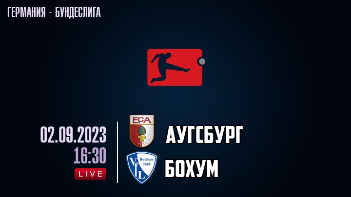 2 сентября 2023 года, состоялась онлайн трансляция футбольного матча между футбольным клубом Аугсбург и футбольным клубом Бохум, проходящего в рамках Бундеслиги Германии.