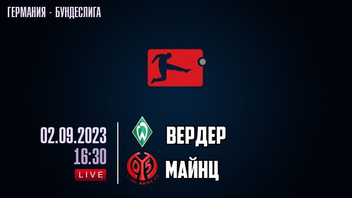2 сентября 2023 года, состоялась онлайн трансляция футбольного матча между футбольным клубом Вердер и футбольным клубом Майнц, проходящего в рамках Бундеслиги Германии.