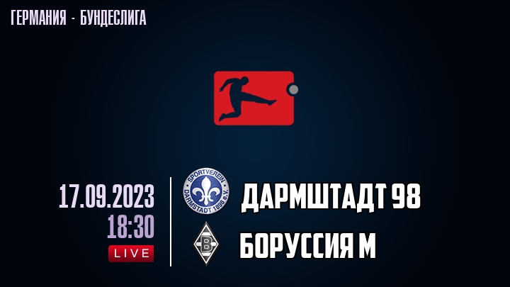 17 сентября 2023 года, состоялась онлайн трансляция футбольного матча между футбольным клубом Дармштадт и футбольным клубом Боруссия М, проходящего в рамках Бундеслиги Германии.