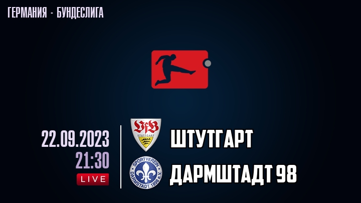 22 сентября 2023 года, состоялась онлайн трансляция футбольного матча между футбольным клубом Штутгарт и футбольным клубом Дармштадт, проходящего в рамках Бундеслиги Германии.