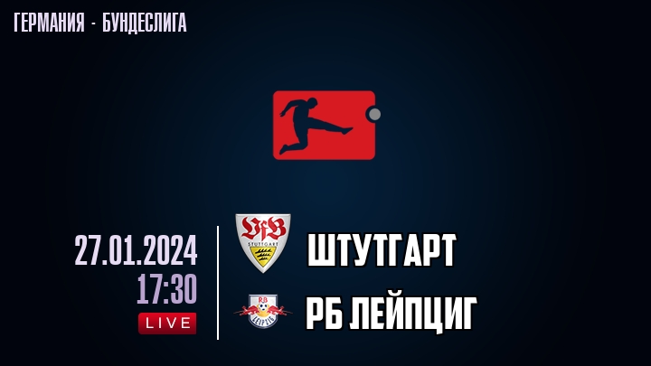 27 января 2024 года, состоялась онлайн трансляция футбольного матча между футбольным клубом Штутгарт и футбольным клубом РБ Лейпциг, проходящего в рамках Бундеслиги Германии.