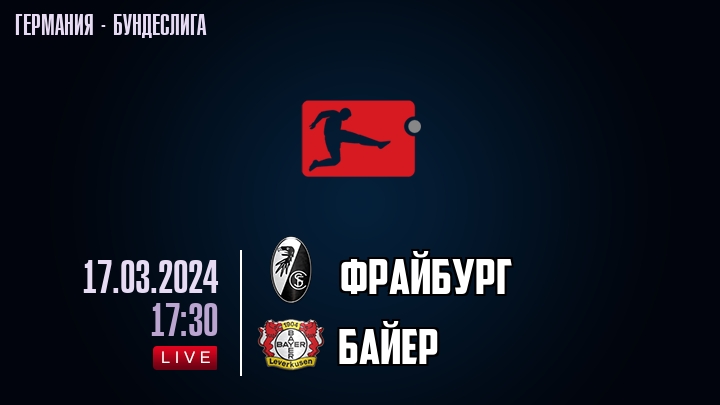17 марта 2024 года, состоялась онлайн трансляция футбольного матча между футбольным клубом Фрайбург и футбольным клубом Байер, проходящего в рамках Бундеслиги Германии.
