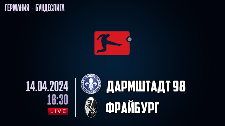 14 апреля 2024 года, состоялась онлайн трансляция футбольного матча между футбольным клубом Дармштадт и футбольным клубом Фрайбург, проходящего в рамках Бундеслиги Германии.