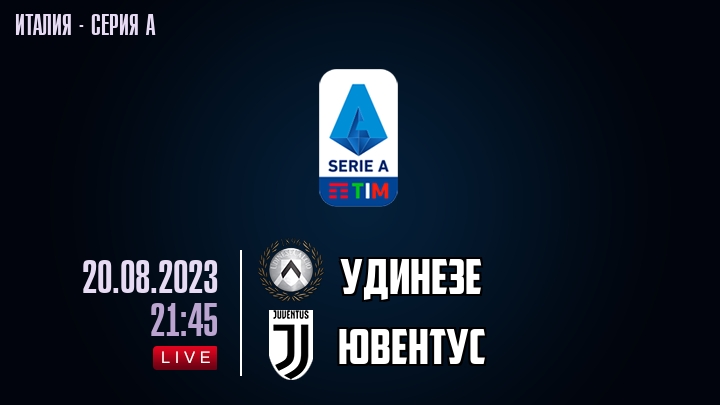 20 августа 2023 года, состоялась онлайн трансляция футбольного матча между футбольным клубом Удинезе и футбольным клубом Ювентус, проходящего в рамках Серии А чемпионата Италии.