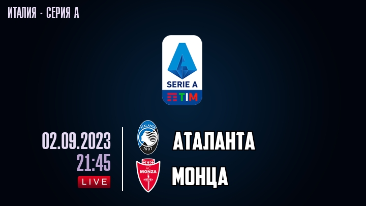 2 сентября 2023 года, состоялась онлайн трансляция футбольного матча между футбольным клубом Аталанта и футбольным клубом Монца, проходящего в рамках Серии А чемпионата Италии.