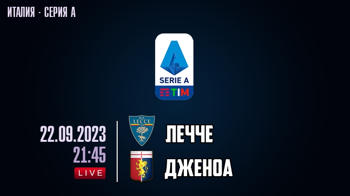 22 сентября 2023 года, состоялась онлайн трансляция футбольного матча между футбольным клубом Лечче и футбольным клубом Дженоа, проходящего в рамках Серии А чемпионата Италии.